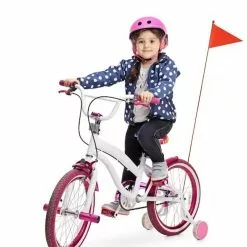 Le fanion de sécurité se fixe sur l’axe de la roue arrière du vélo ou de la remorque.
